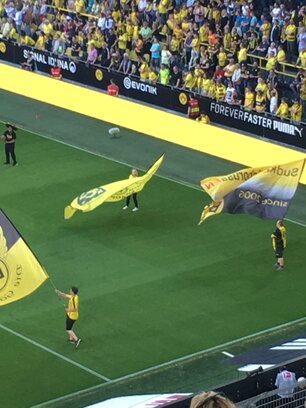 Am 21.04.2018, dem 31. Spieltag der Saison 2017/2018 konnten wir beim Spiel unseres BVB gegen Leverkusen nicht nur den 4:0 Sieg sondern auch mit unserer Susi den 1. Fahnenträger unseres Fanclubs feiern. Zwar nicht mit unserer Fahne, aber was nicht ist kann ja noch werden...